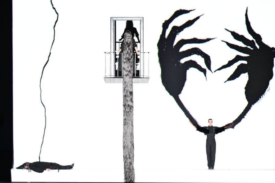 Les attributs du flamenco le plus traditionnel – zapateados, castagnettes, châle, éventail, bata de cola – s’enivrent de ces visions surréalistes dans un ballet contemporain fait de vie nocturne, de défilés de mode, d’esthétique queer et de voguing. Intégralement vêtus de noir, les danseurs hypnotisent littéralement le public grâce à des chorégraphies au cordeau, magnifiées par de saisissants jeux de lumières – jeux d’ombres, crépitements de flashs – qui instillent à chaque geste une énergie vitale et une profonde aura de mystère.